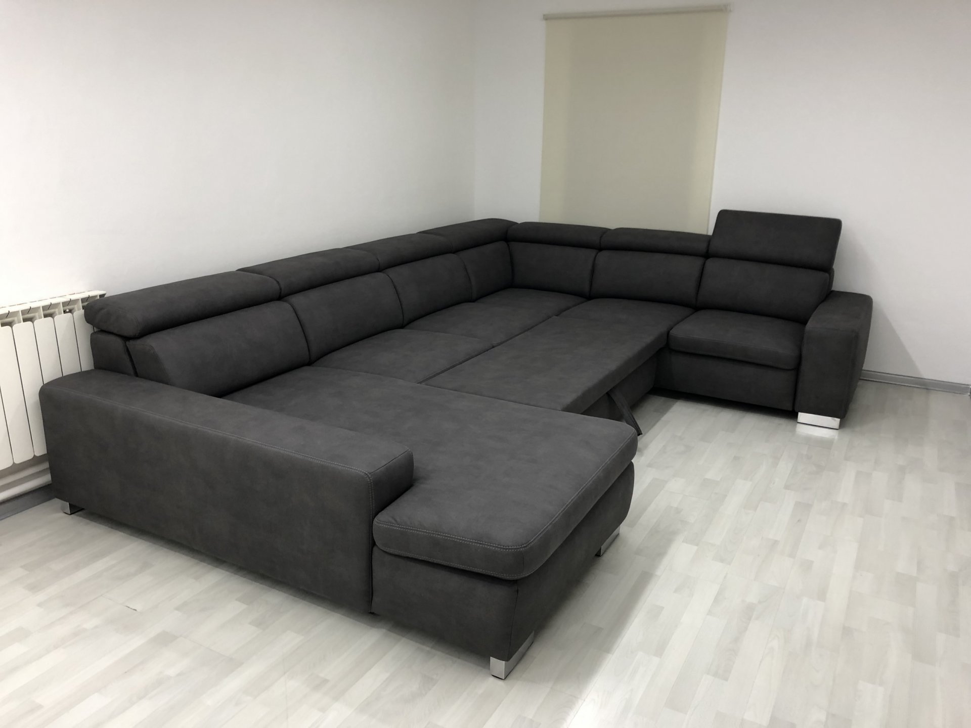 Moderní designová sedací souprava s rozkladem na spaní nebo s elekrickým posuvem sedáků. Možnosti různých sestav, rohových, tvar U nebo 3+2+1. Velmi kvalitní sedací souprava za příznivou cenu.